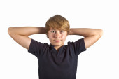 inteligentny mały chłopiec uśmiecha się na białym tle