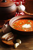 Ukraiński buraki zupa - barszcz w misce i puli, serwetka, na tle drewniane