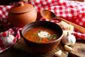 Zdjęcie "Ukraiński buraki zupa - barszcz w misce i puli, serwetka, na tle drewniane" może być wykorzystywane do celów osobistych i komercyjnych zgodnie z warunkami zakupionej licencji Royalty-free. Obraz jest dostępny do pobrania w jakości wysokiej rozdzielczości do 5760x3840.