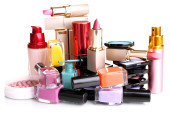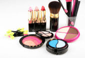 Zestaw kosmetyków dekoracyjnych na jasnym tle kolorowe