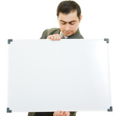 człowiek posiadający biały deska.