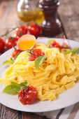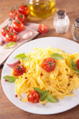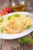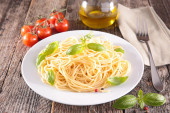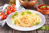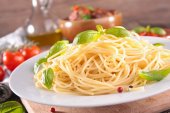 Spaghetti z bazylią w białej płytce
