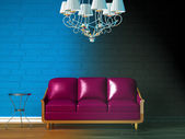 Samotny luksusowy fotel ze szklanym żyrandolem w minimalistycznym wnętrzu