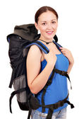 nastoletnie uczennice z plecakiem i szczęśliwy uśmiech