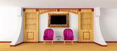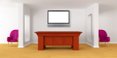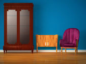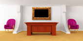 Szafka z tabeli, nowoczesne lustro i luksusowy fotel