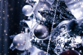 srebrny Christmas cacko i czerwoną wstążką na lodzie