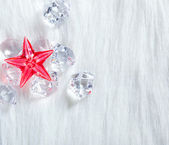 srebrny Christmas cacko i czerwoną wstążką na lodzie