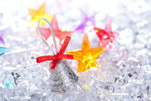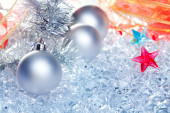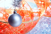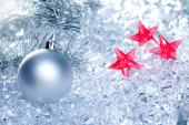 srebrny Christmas cacko i czerwoną wstążką na lodzie