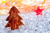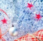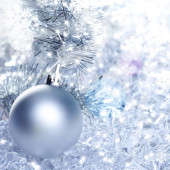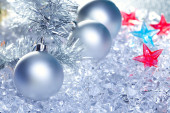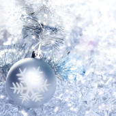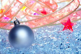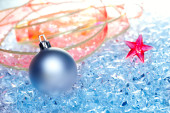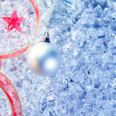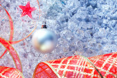 srebrny Christmas cacko i czerwoną wstążką na lodzie