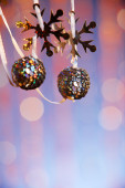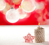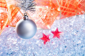 srebrny Christmas cacko z czerwoną wstążką na lodzie