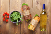 Zdjęcie "Dwie kanapki, sałatki i białego wina" może być wykorzystywane do celów osobistych i komercyjnych zgodnie z warunkami zakupionej licencji Royalty-free. Obraz jest dostępny do pobrania w jakości wysokiej rozdzielczości do 5760x3840.