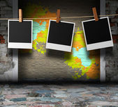 ilustracja filmów polaroid przypięte na desce z krzywej