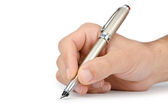 mężczyzna dłoni z pióra na białym tle