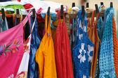 Colorful gipsy dresses in rack hanged in Spain