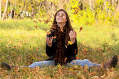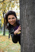 uśmiechnięte dziewczyny spaceru w parku jesień