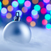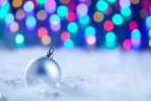 Boże Narodzenie bombki srebro na lodzie zimą
