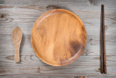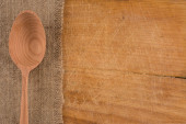 Rustykalne martwa. Drewnianą łyżką i płyta na serwetki lniane. Drewnianym tarasem