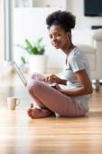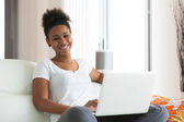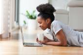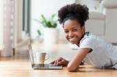 Afryki amerykański student dziewczyna za pomocą laptopa
