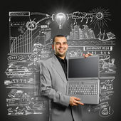 Lampa głowa biznesmeni pokazuje dobrze