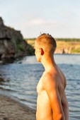 uśmiechający się średniej wieku kaukaski kobieta nagi opalony odkryty portrai