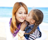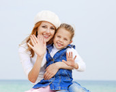dwie siostry 5 i 22 lat na plaży w słoneczny dzień jesieni