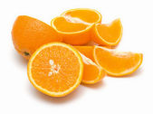 Segmenty owoców pomarańczy w plasterkach, izolowane na białym tle