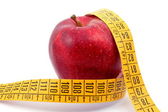 jabłko z centymetrem. pojęcie zdrowego stylu życia.