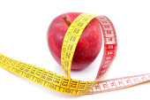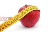 jabłko z centymetrem. pojęcie zdrowego stylu życia.