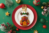 Świąteczny Purim wyświetlacz, widok z góry smaczne hamantaschen, Gwiazda Dawida dekoracje, złoty wąż, wszystko rozłożone na wesołym żółtym tle z miejsca na tekst