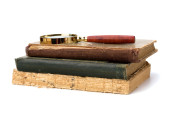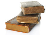 stos postrzępione książka na białym tle