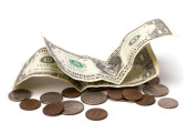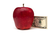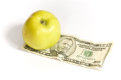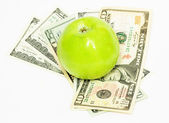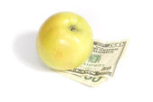 jabłko i pieniądze na białym tle. koncepcja zdrowia