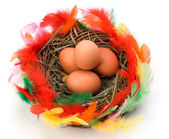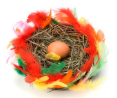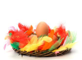 Pisanka w gnieździe izolowane na białym tle