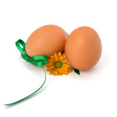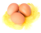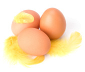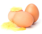 jaja i pióro na białym tle. Wielkanoc wystrój.