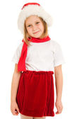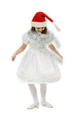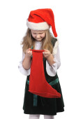 dziewczyna z czerwony kapelusz i czerwone skarpety, na białym tle