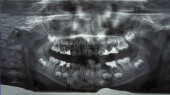 Zdjęcie rentgenowskie stomatologiczne zębów ludzki na białym tle