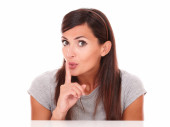 Zdjęcie "Kaukaski kobieta co gest ciszy" może być wykorzystywane do celów osobistych i komercyjnych zgodnie z warunkami zakupionej licencji Royalty-free. Obraz jest dostępny do pobrania w jakości wysokiej rozdzielczości do 5760x3840.