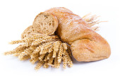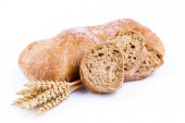 Smaczny chleb z pszenicy na białym tle.