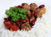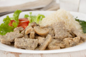 Beef stroganoff with salad