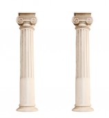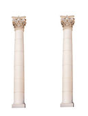 Dwa białe kolumny w stylu klasycystycznym na białym tle na biały backg