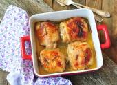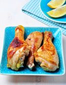 Uda kurczaka pieczone na drewniane table.selective skupić się