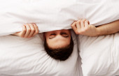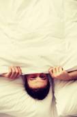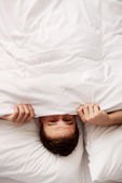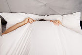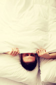 Zdjęcie "mężczyzna ukrywał się w łóżku pod arkuszy." może być wykorzystywane do celów osobistych i komercyjnych zgodnie z warunkami zakupionej licencji Royalty-free. Obraz jest dostępny do pobrania w jakości wysokiej rozdzielczości do 5760x3840.