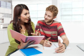 Zdjęcie "dwóch młodych studentów studiuje razem w klasie siedzi w" może być wykorzystywane do celów osobistych i komercyjnych zgodnie z warunkami zakupionej licencji Royalty-free. Obraz jest dostępny do pobrania w jakości wysokiej rozdzielczości do 5760x3840.