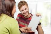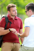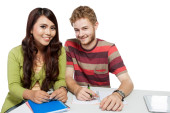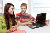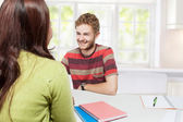 dwóch młodych studentów studiuje razem w klasie siedzi w