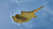 Cypr podkreślony na jasnej mapie elewacji z jeziorami i rzekami