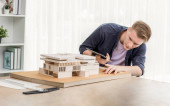 Zdjęcie "Szczęśliwy ojciec przenieść się do muzyki podczas gotowania żywności i przygotować obiad w nowoczesnej kuchni. Aktywny tata tańczy do piosenki, robiąc zdrowe jedzenie lub sałatkę otoczoną warzywami i przyborami kuchennymi. Pedagogika." może być wykorzystywane do celów osobistych i komercyjnych zgodnie z warunkami zakupionej licencji Royalty-free. Obraz jest dostępny do pobrania w jakości wysokiej rozdzielczości do 5760x3840.