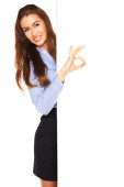 Pracownik urzędu za biały deska
