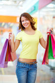 piękna kobieta w centrum handlowego z torby i uśmiechając się