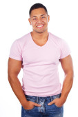 Zdjęcie "Uśmiechający się facet w szary podkoszulek" może być wykorzystywane do celów osobistych i komercyjnych zgodnie z warunkami zakupionej licencji Royalty-free. Obraz jest dostępny do pobrania w jakości wysokiej rozdzielczości do 5760x3840.