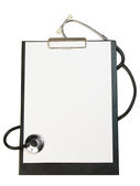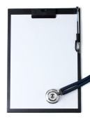 Schowek medyczny i stetoskop izolowane na białym tle.