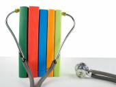 Schowek medyczny i stetoskop izolowane na białym tle.
